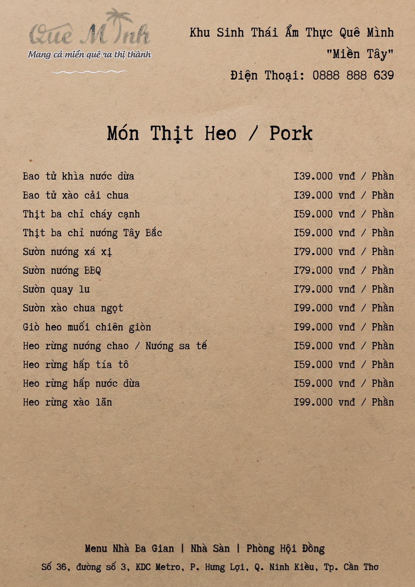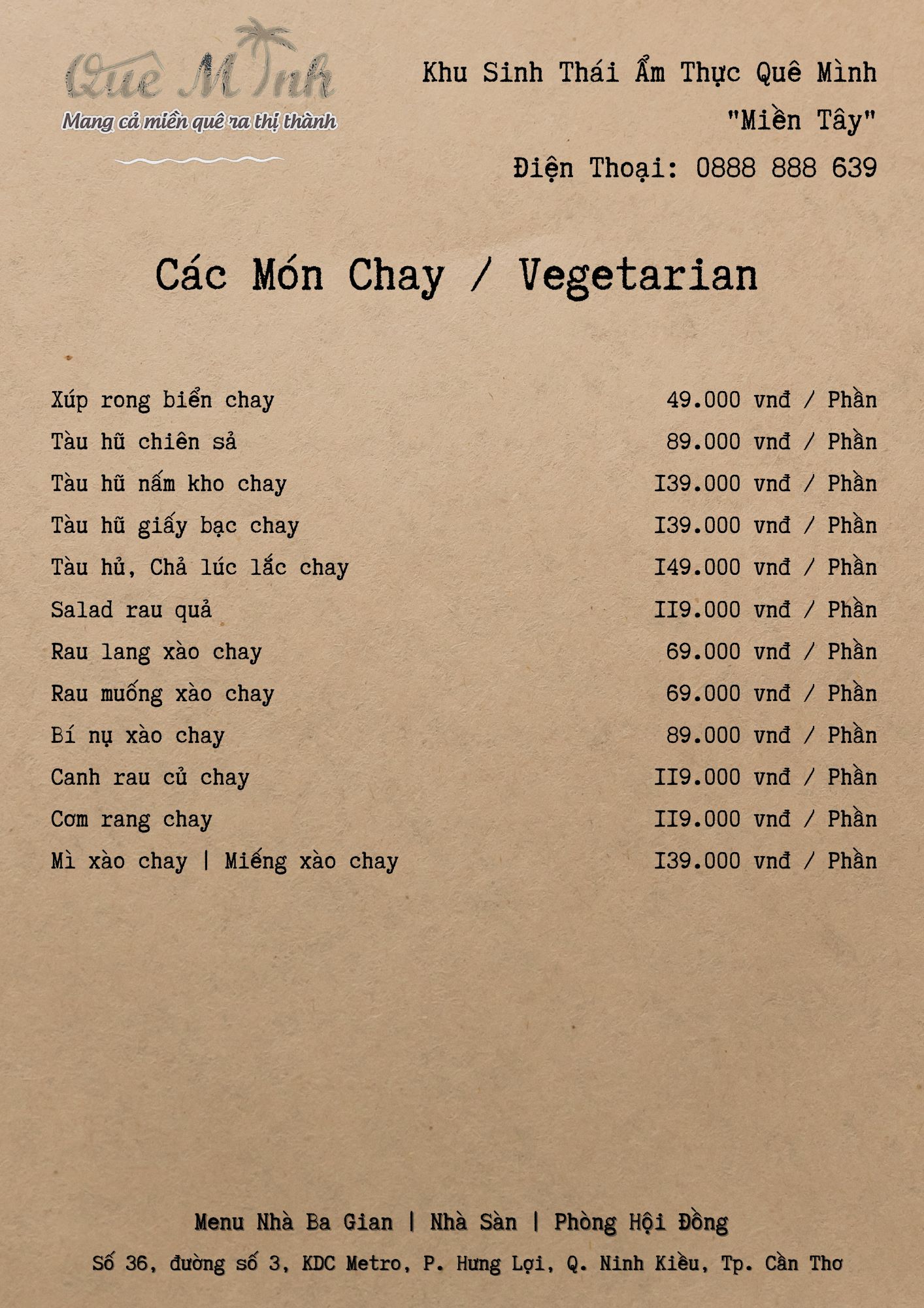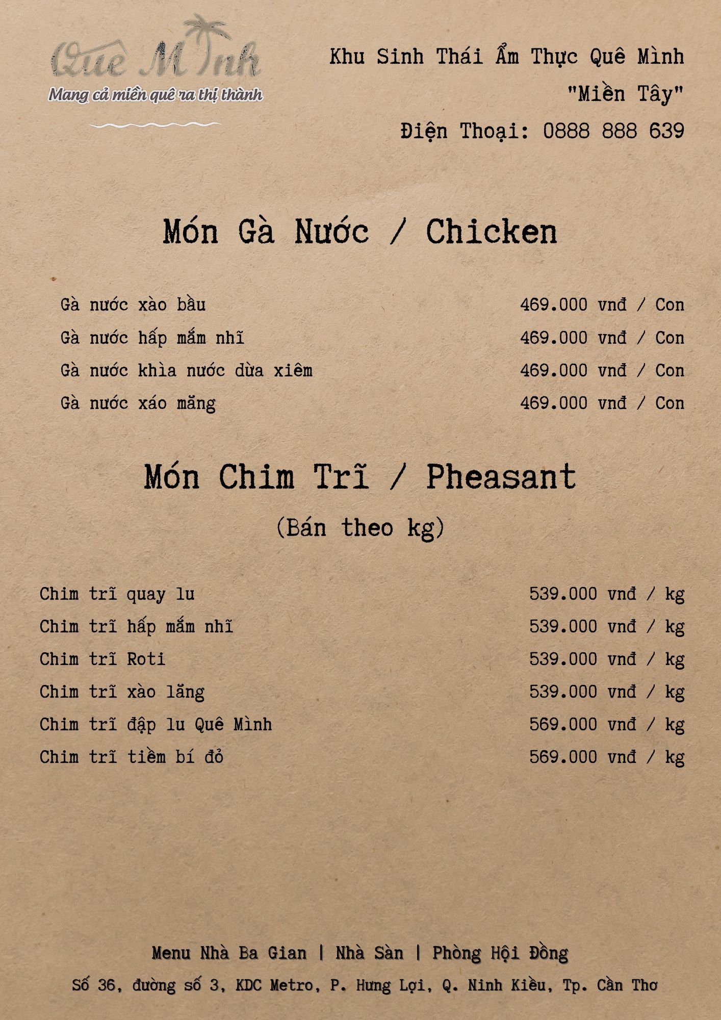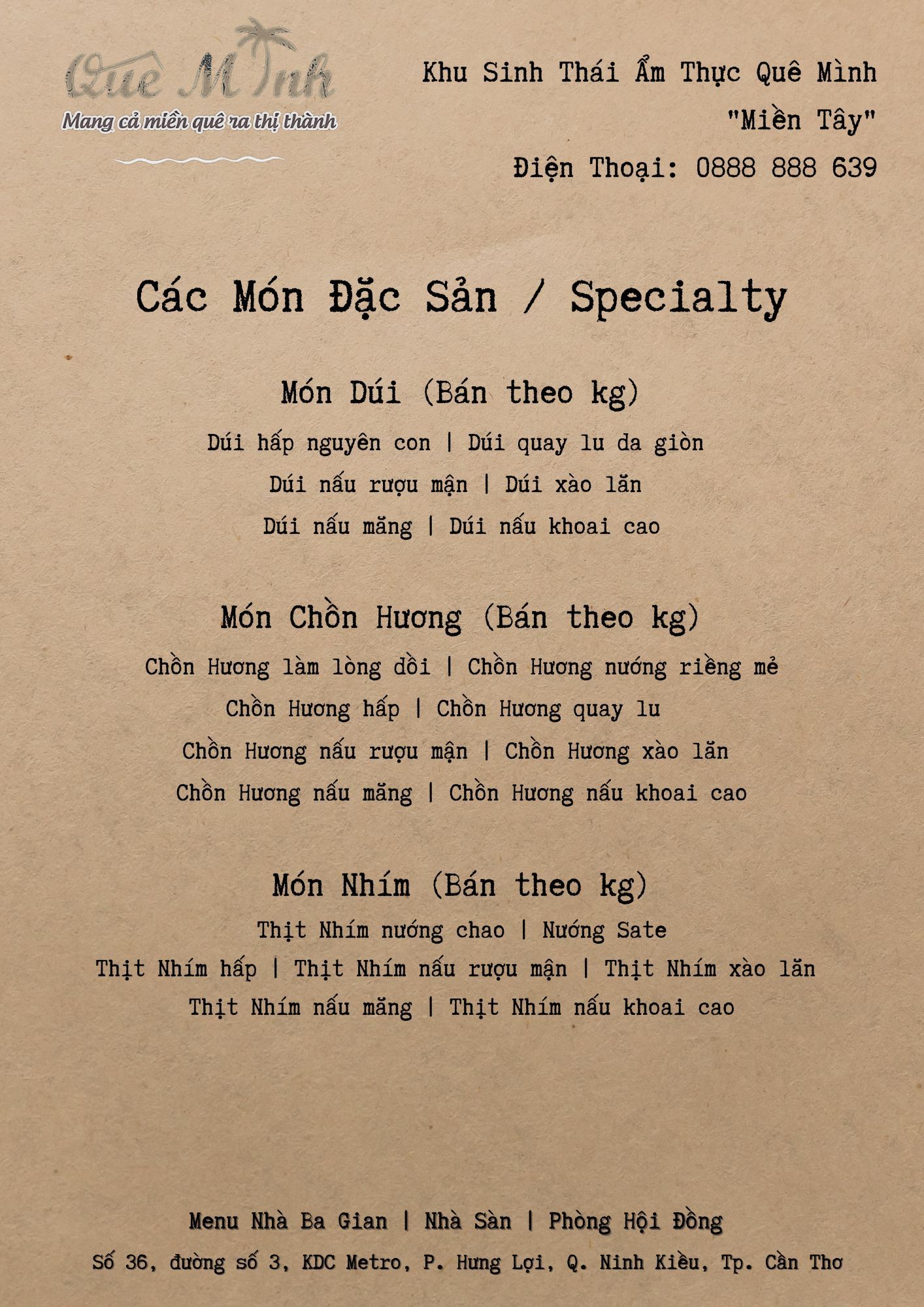 MENU NHÀ BA GIAN & NHÀ SÀN & PHÒNG HỘI ĐỒNG (V.I.P)