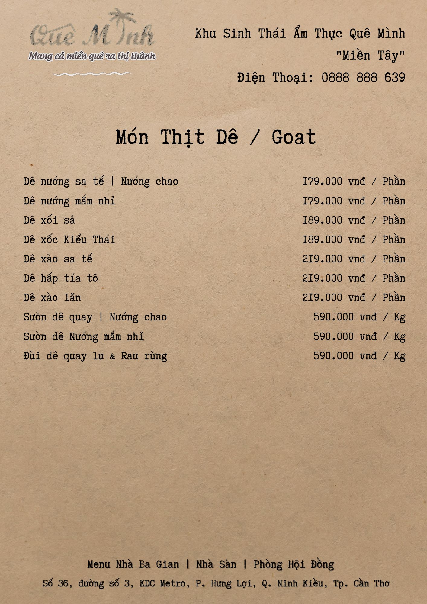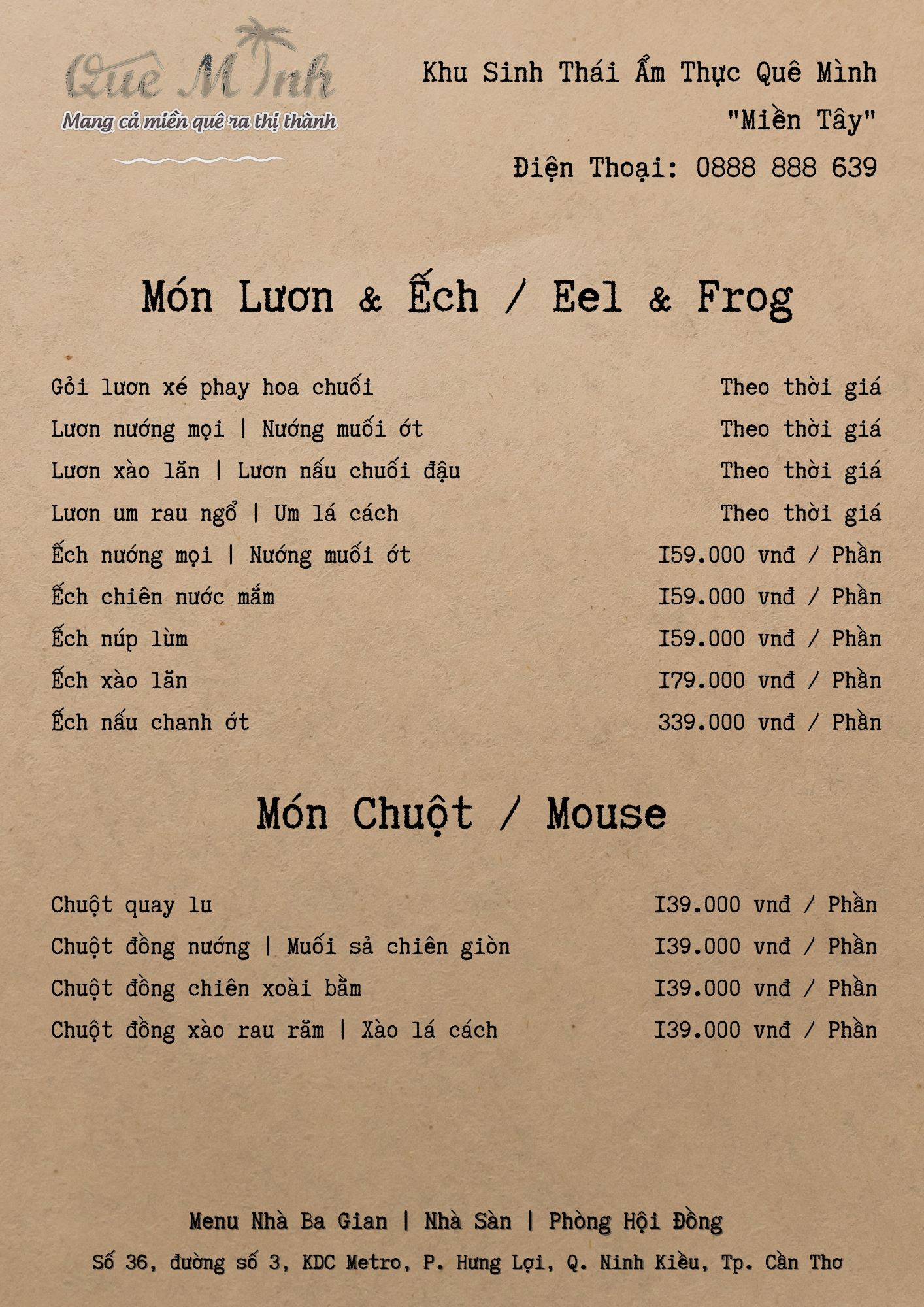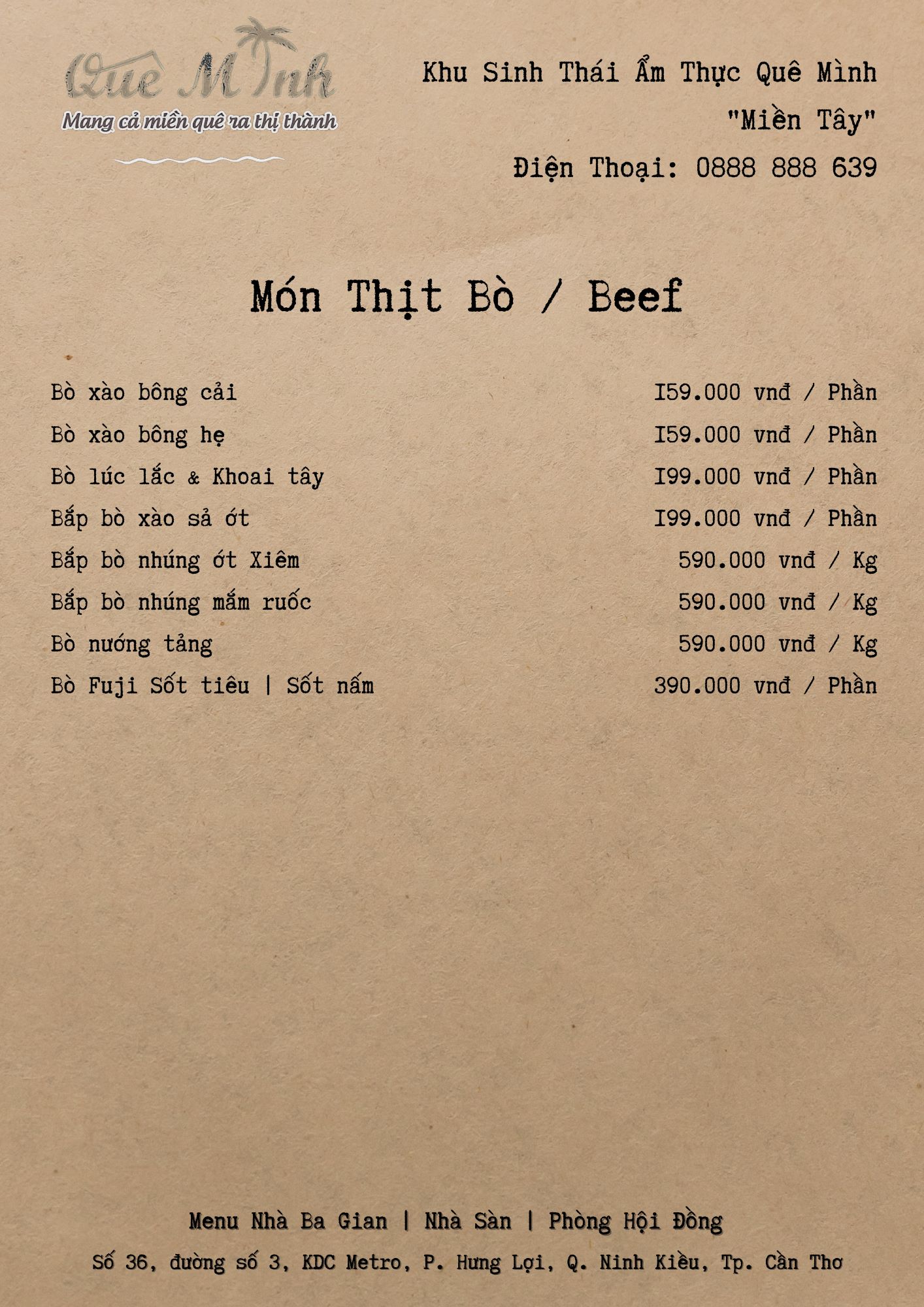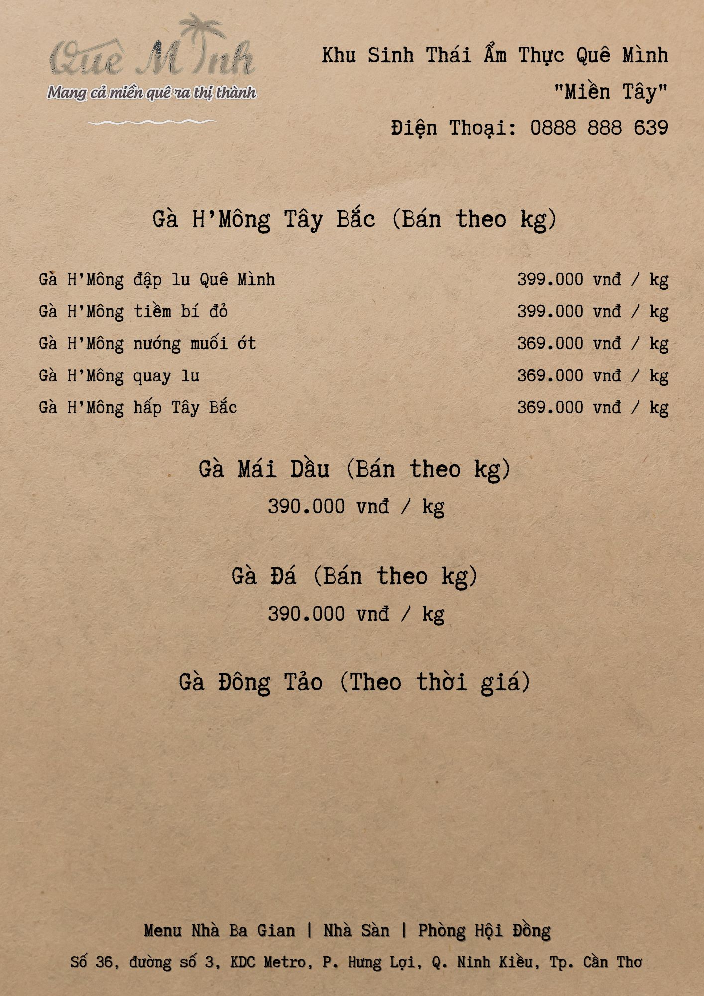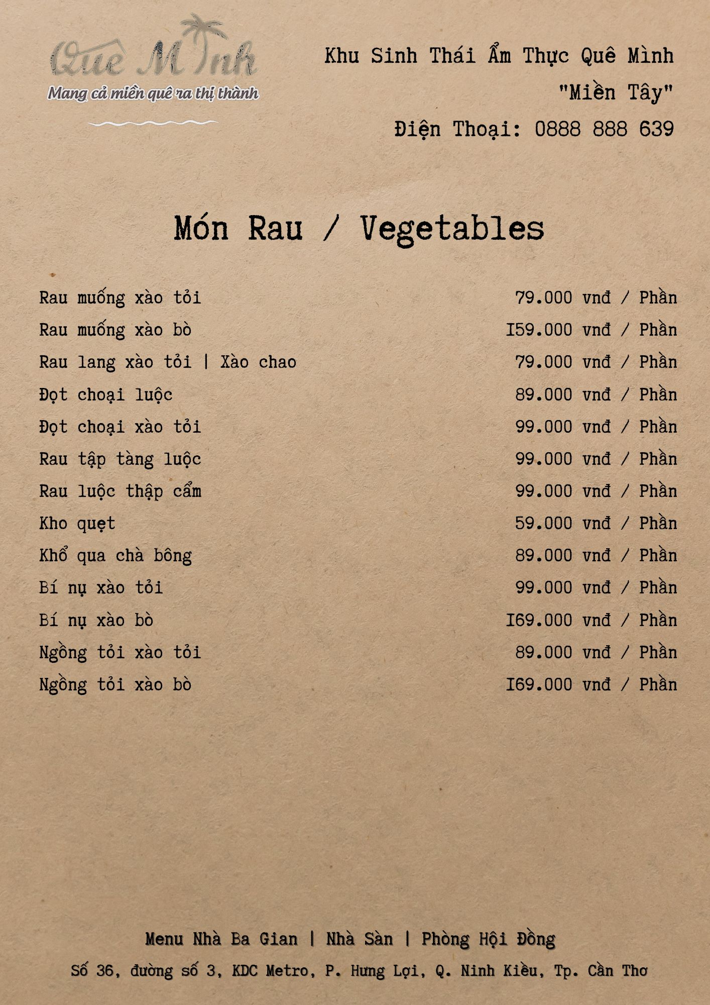 MENU NHÀ BA GIAN & NHÀ SÀN & PHÒNG HỘI ĐỒNG (V.I.P)