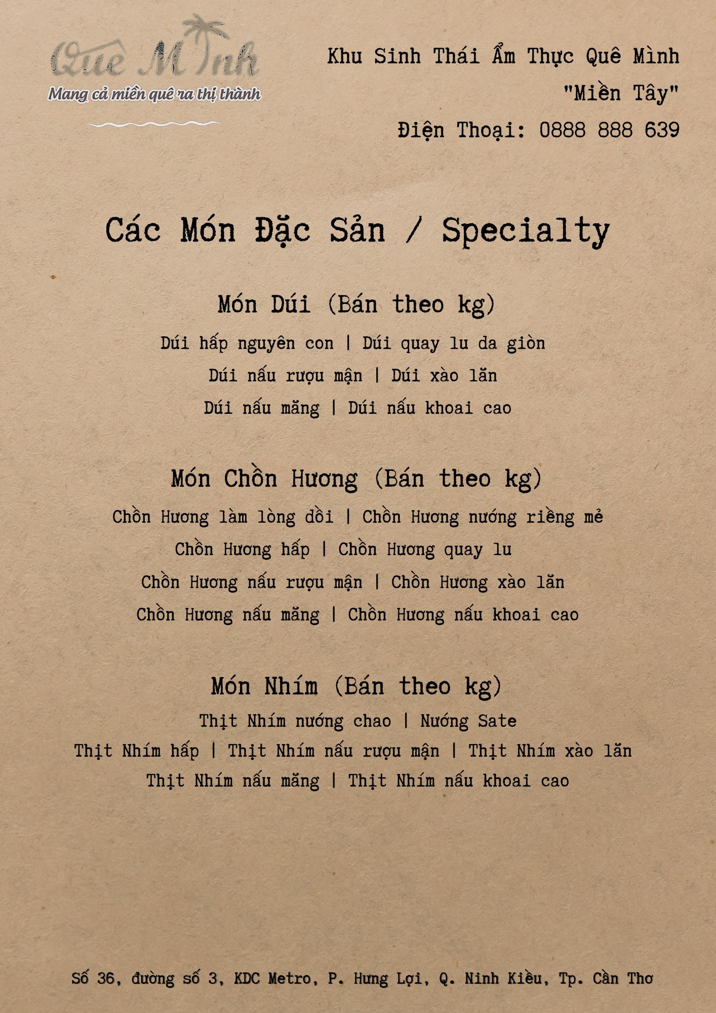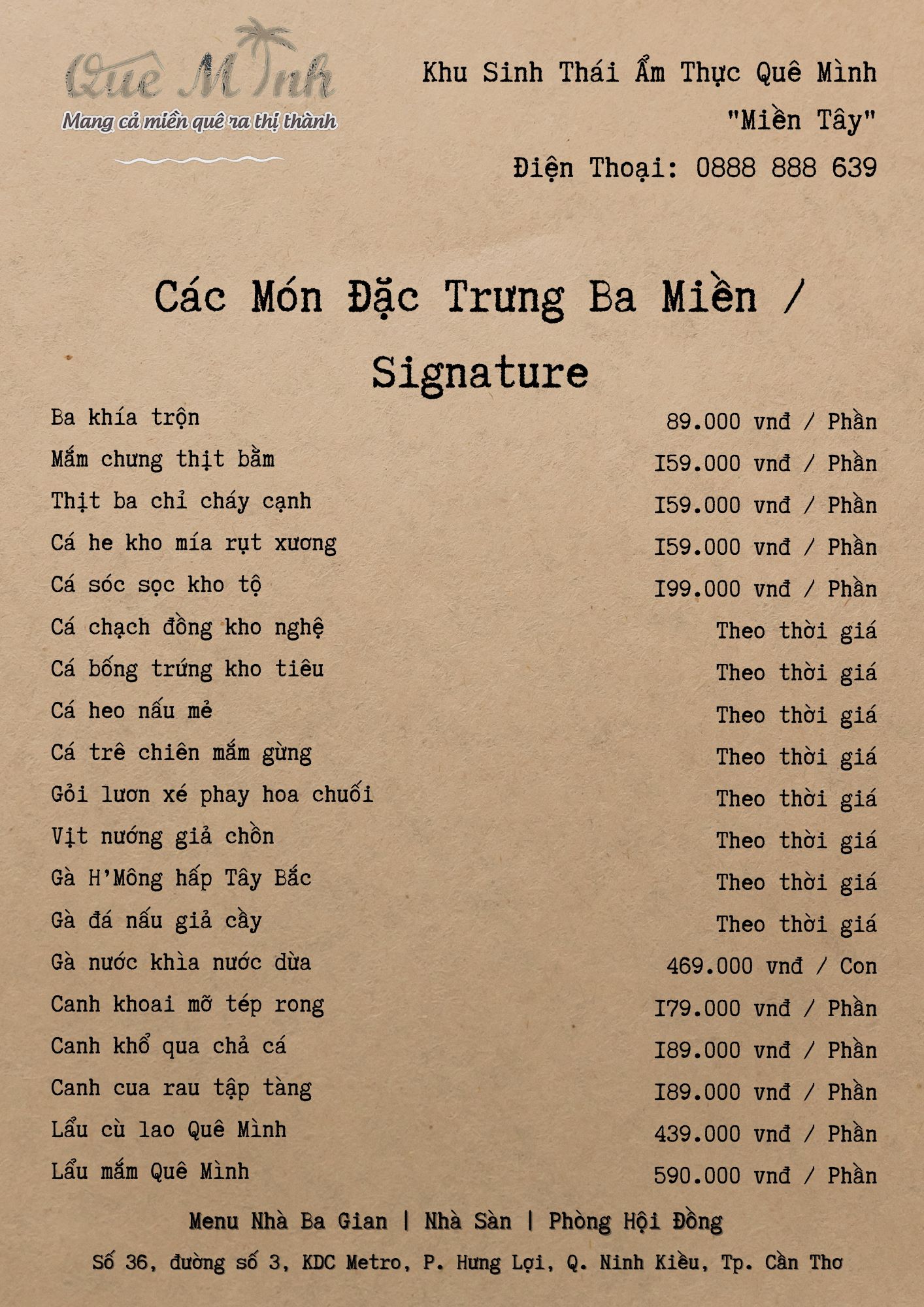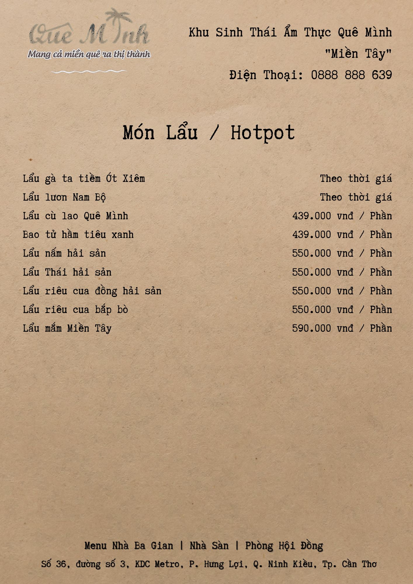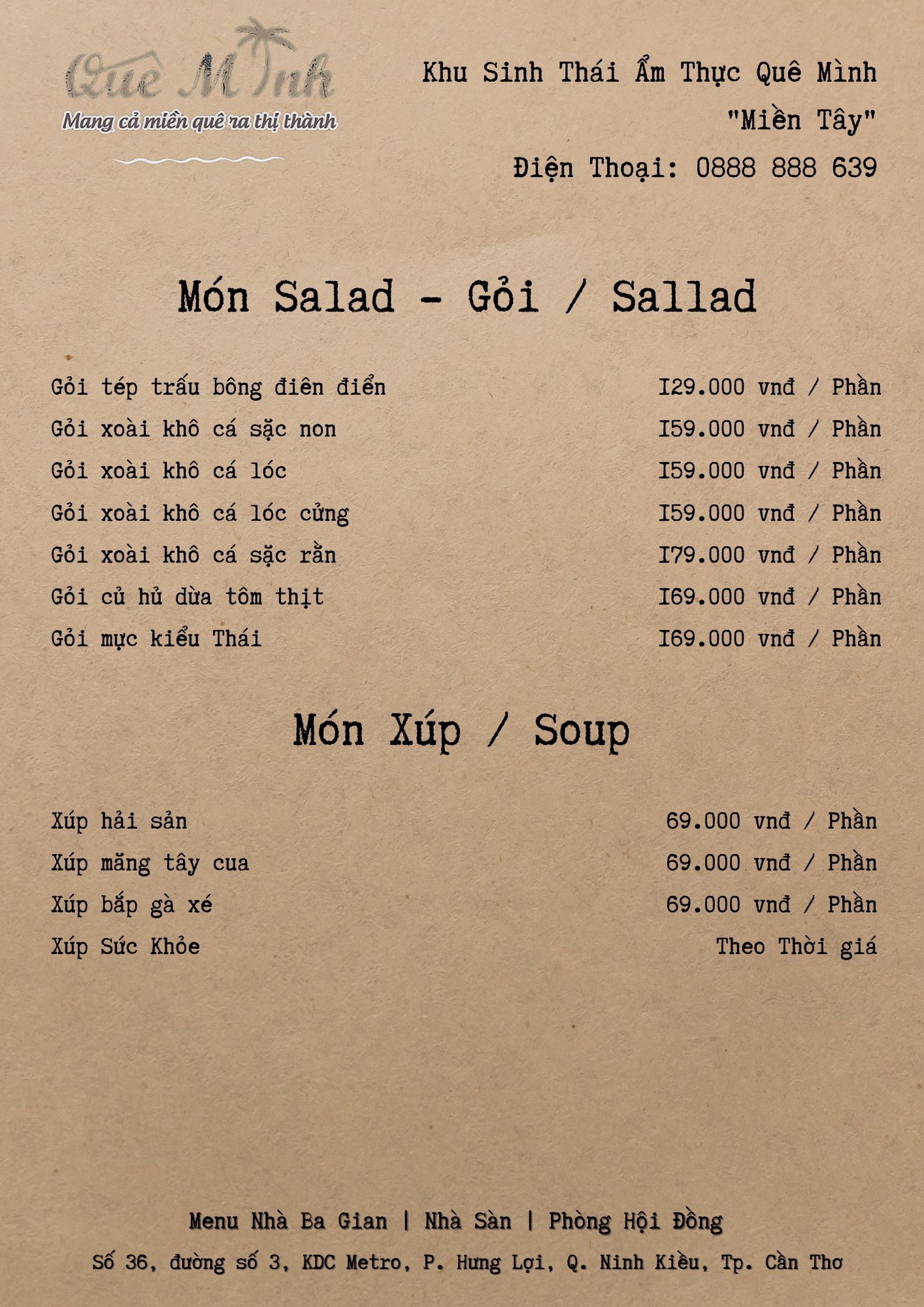 MENU NHÀ BA GIAN & NHÀ SÀN & PHÒNG HỘI ĐỒNG (V.I.P)