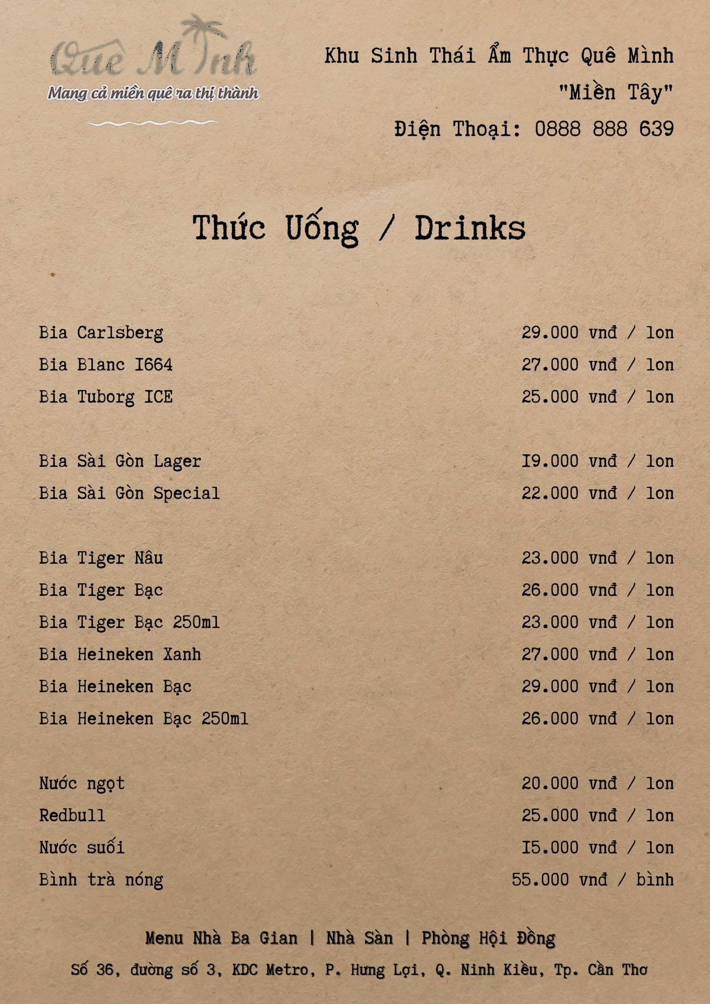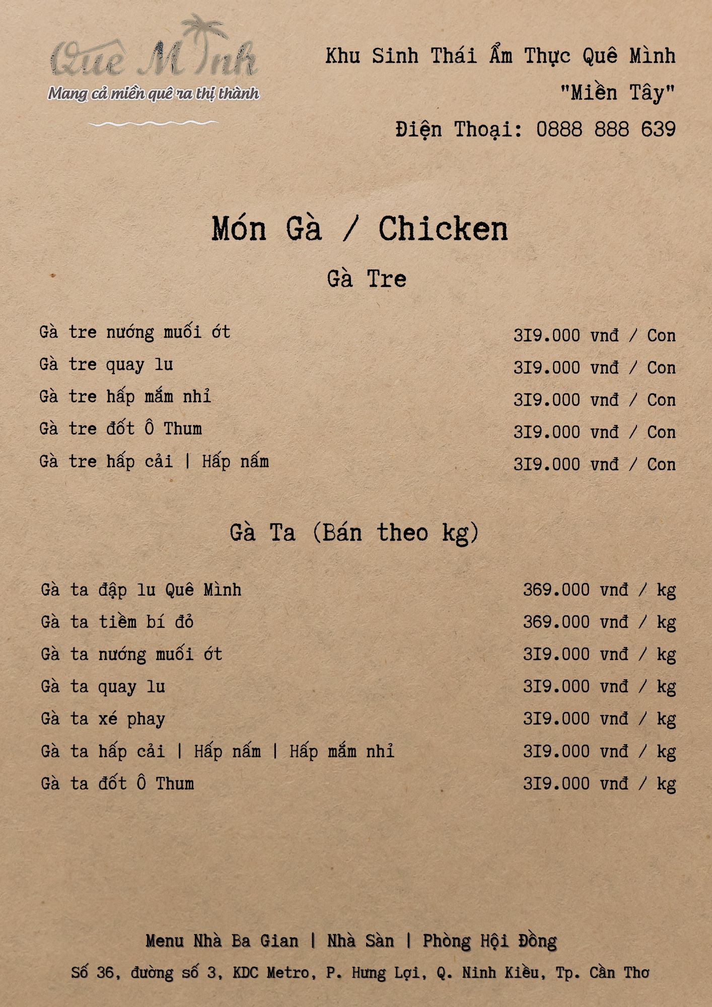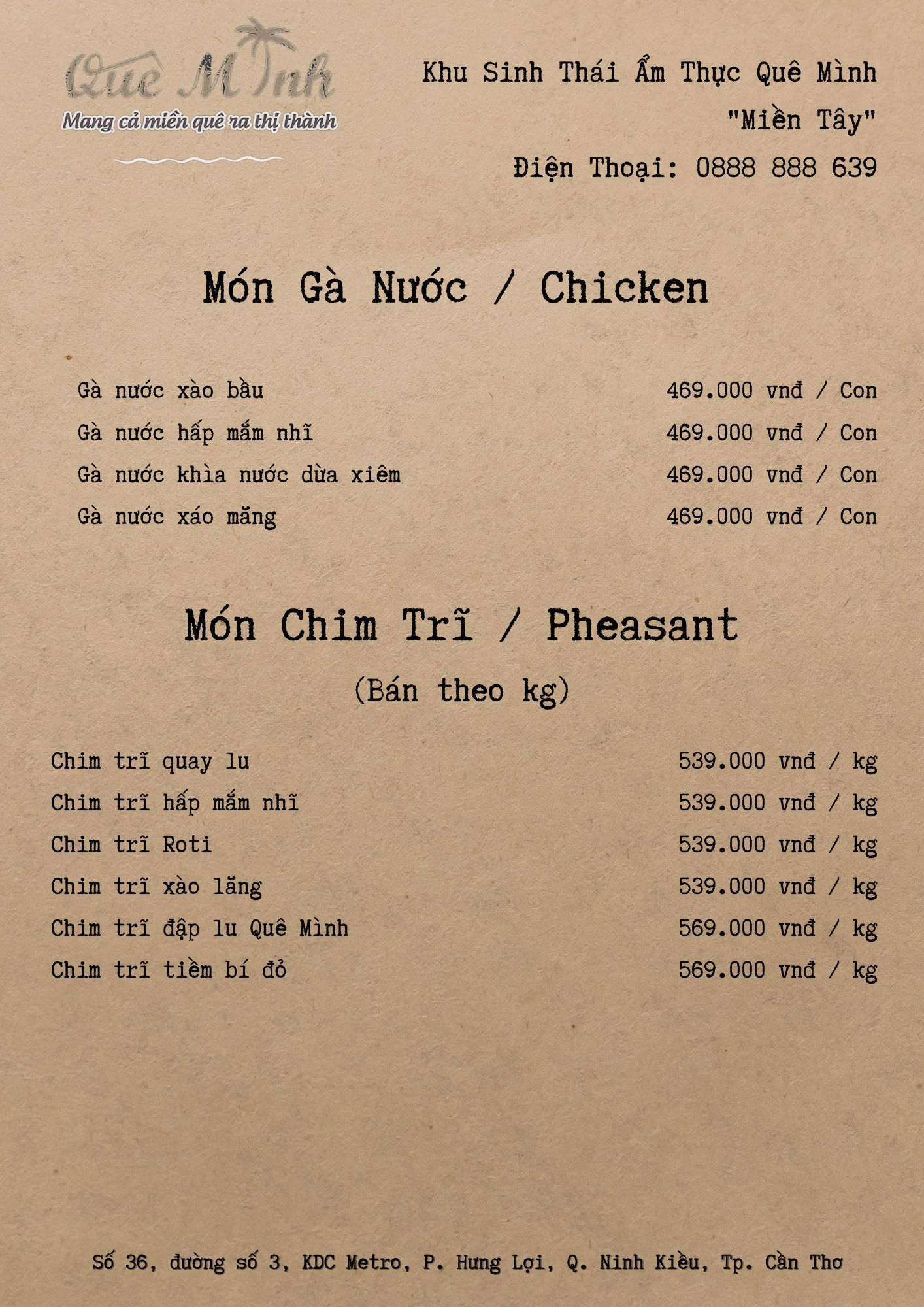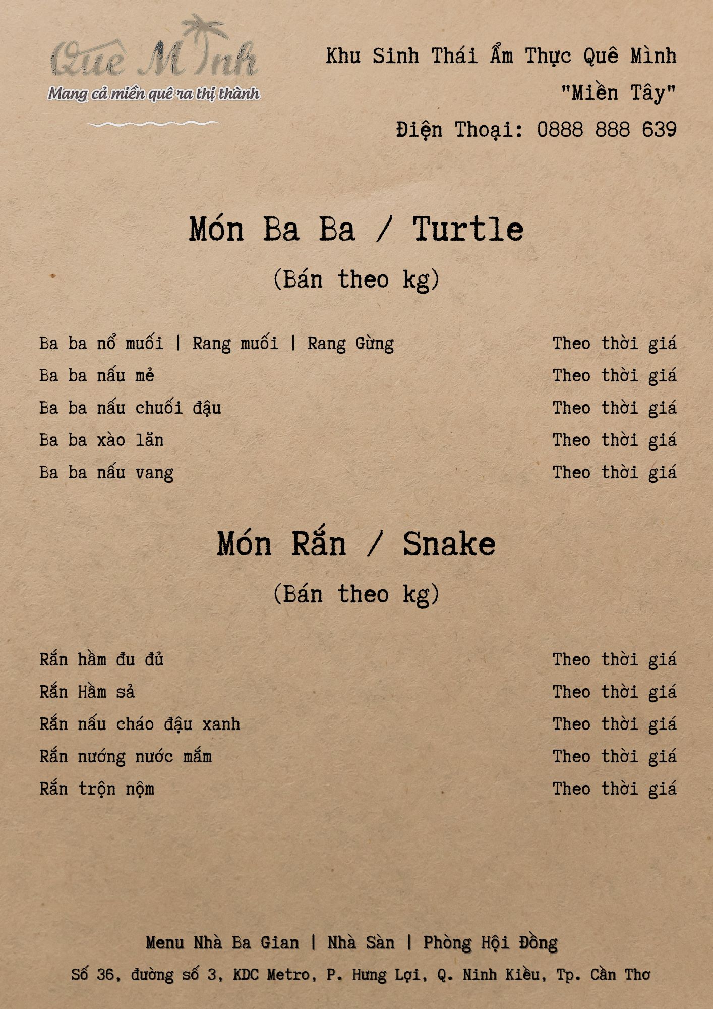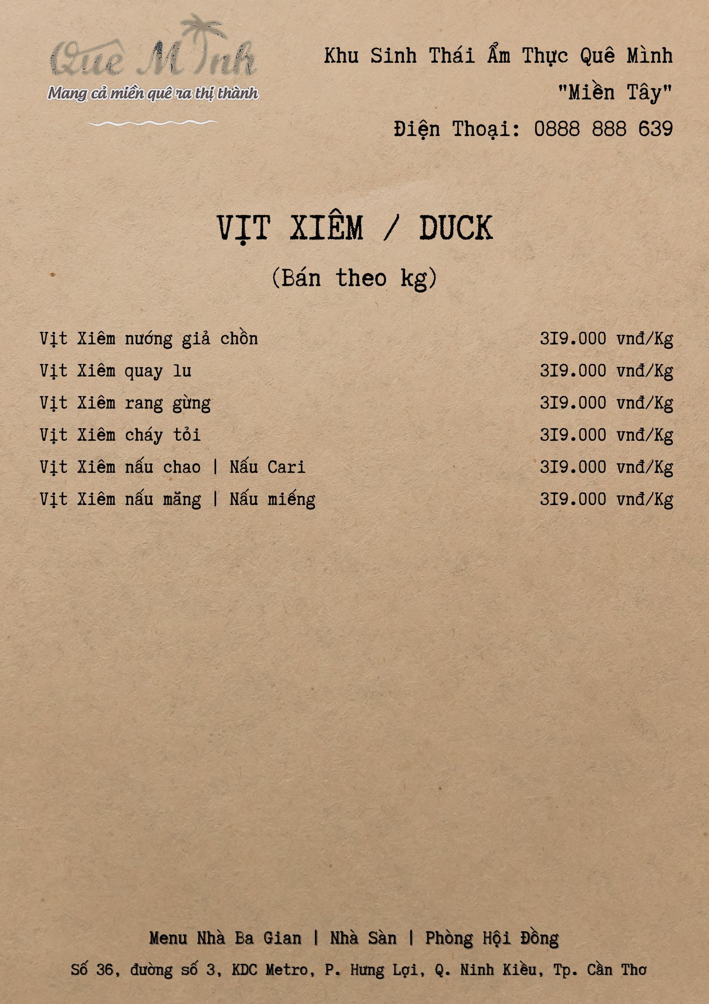 MENU NHÀ BA GIAN & NHÀ SÀN & PHÒNG HỘI ĐỒNG (V.I.P)