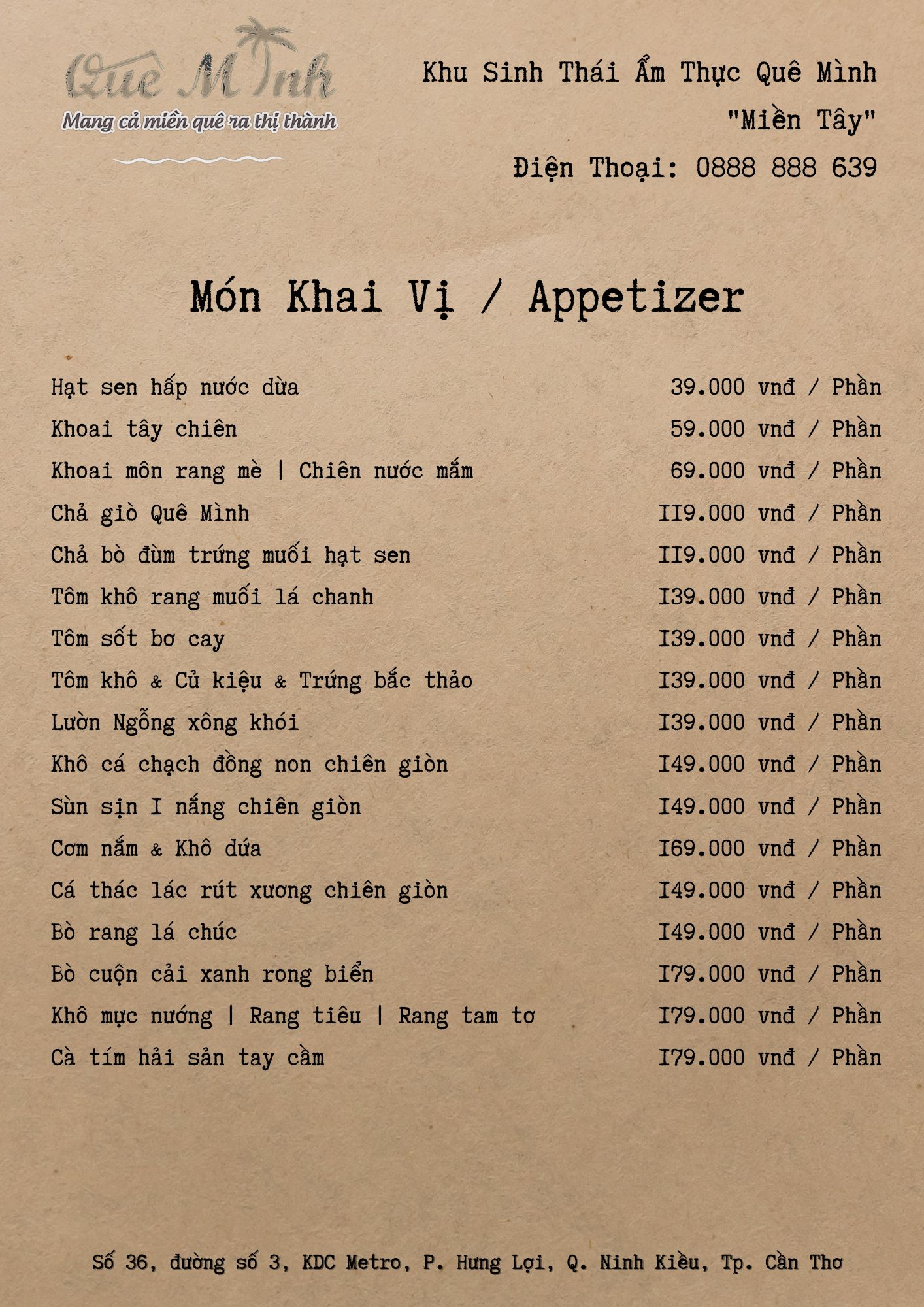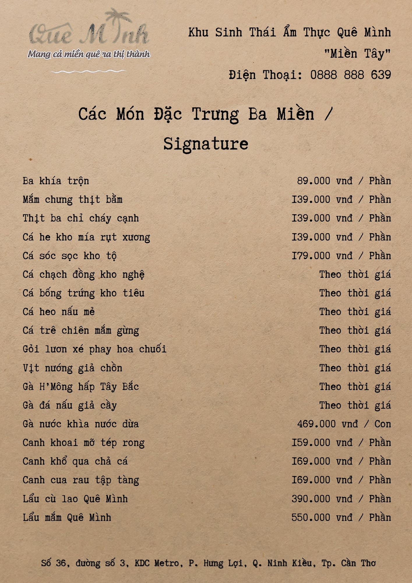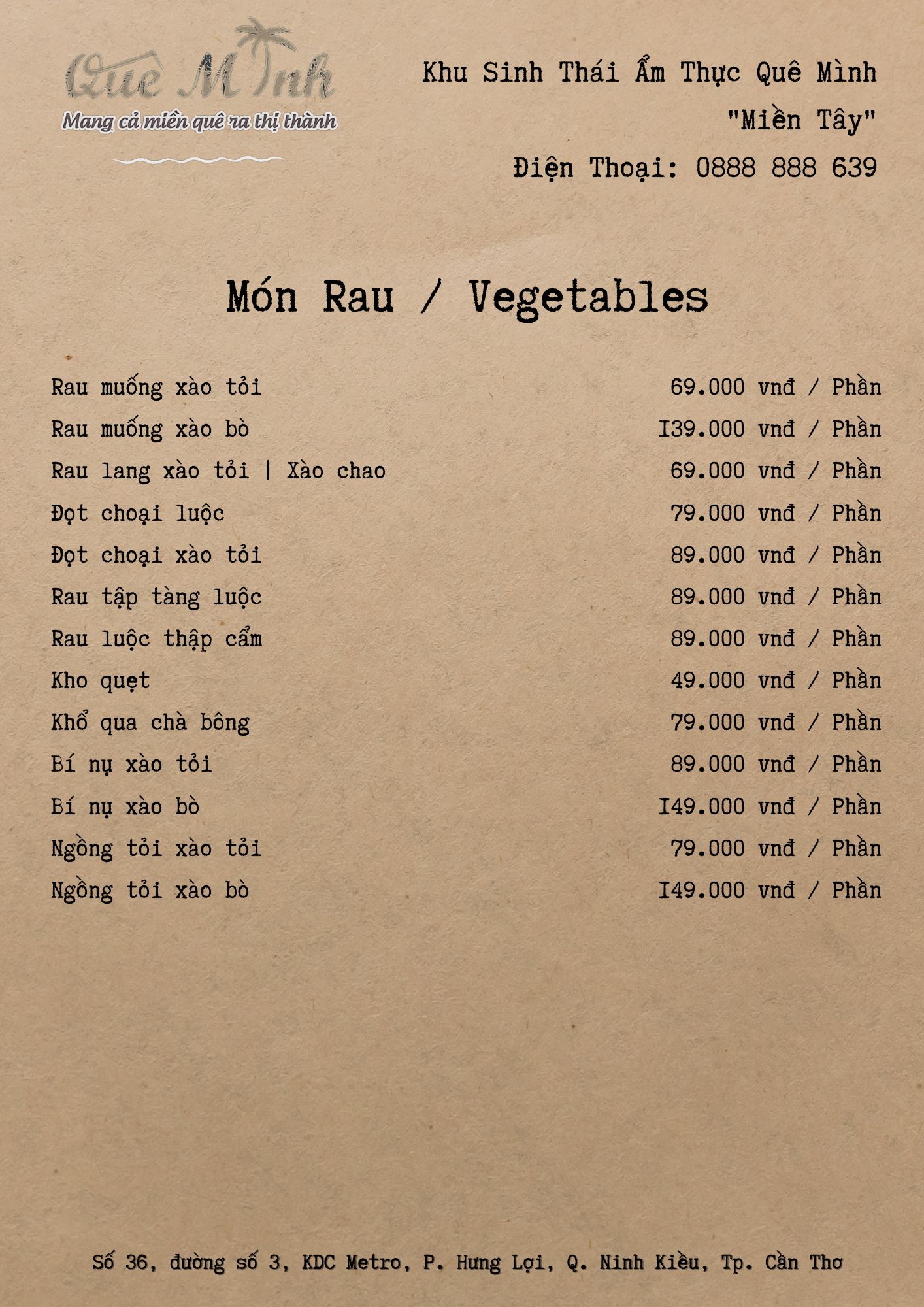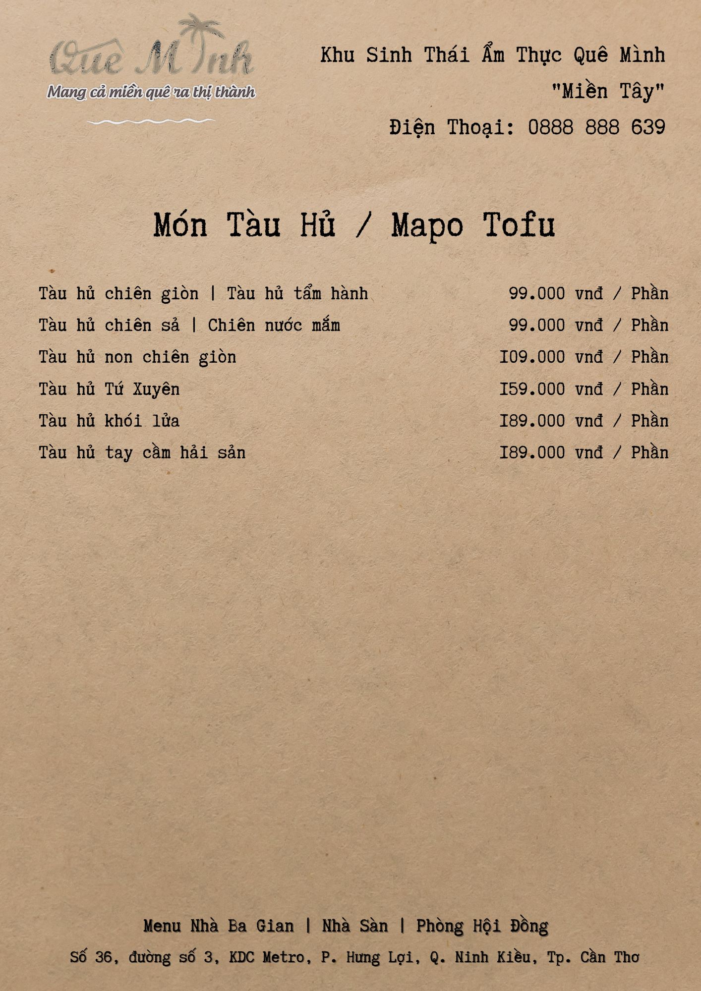 MENU NHÀ BA GIAN & NHÀ SÀN & PHÒNG HỘI ĐỒNG (V.I.P)